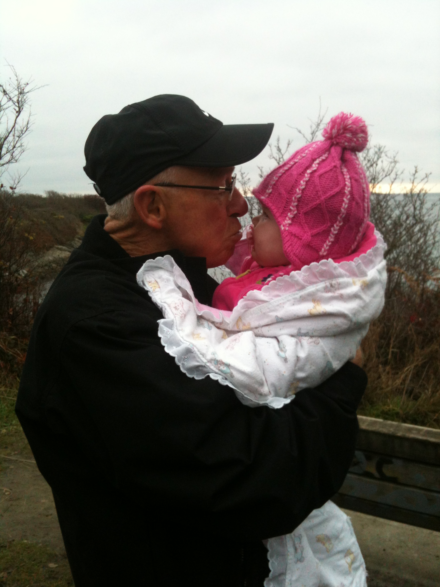 I am very grateful to be close to my parents (in location and in relationship). When my dear daughter was about six months old, my dad came down to give us a hand with the kiddies for a few days. We were out traipsing around the island one morning and I snapped pics with my iPhone (as usual). This was the result: a happy baby with her “Bubba.”